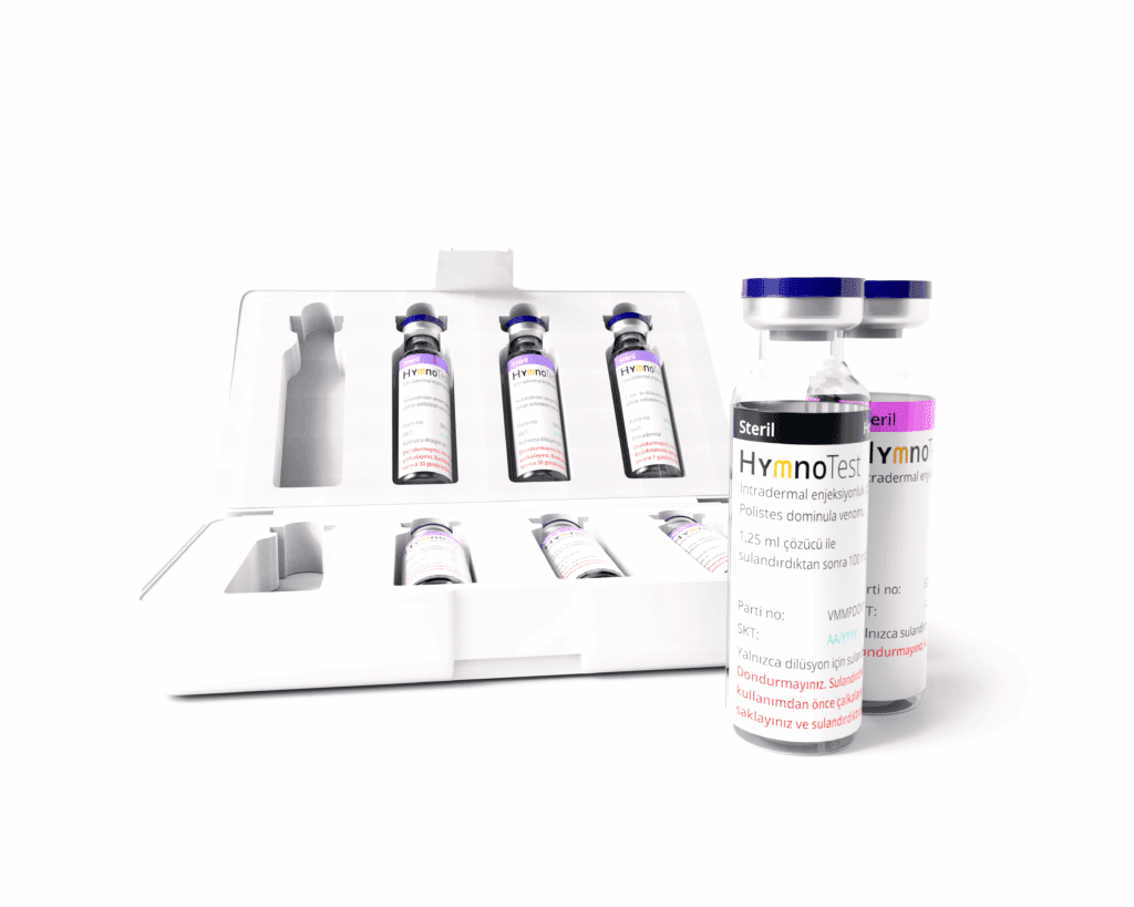 Venom ekstraktı ve solvent flakonları aşağıdaki şekilde tanımlanmıştır,