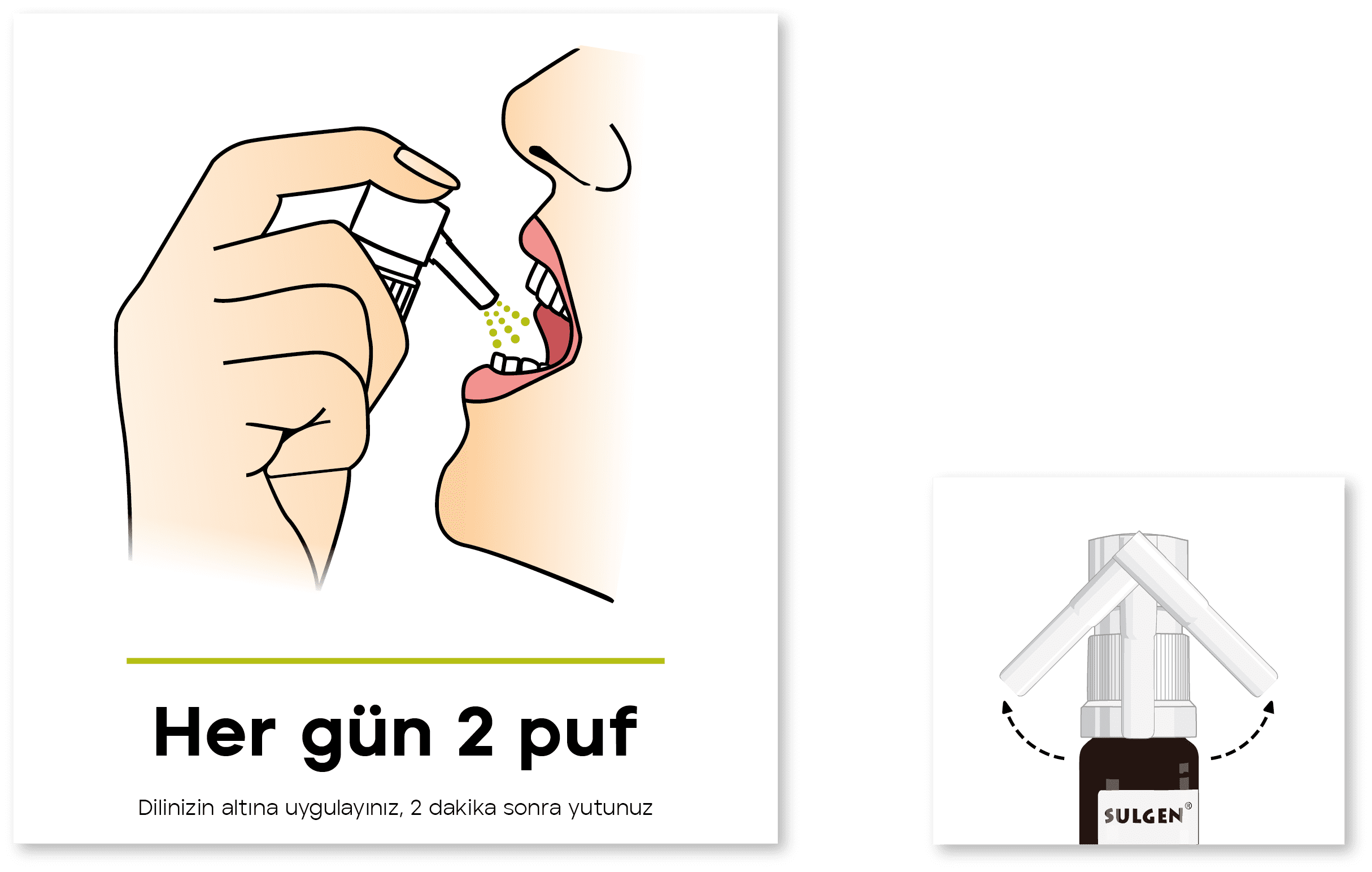 Dilin altında yaklaşık 2 dakika tutulmalı ve ardından yutulmalıdır.